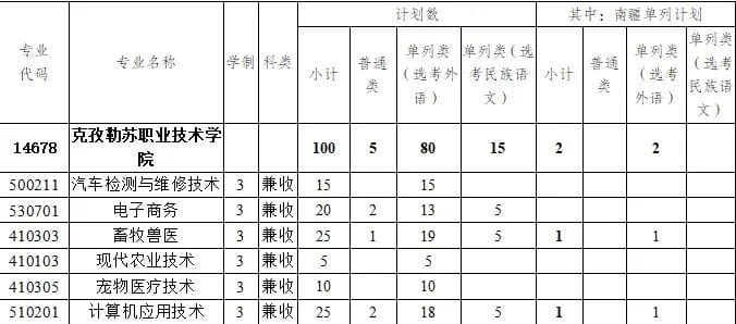 第六条 学院位于祖国西部边陲克孜勒苏柯尔克孜自治州阿图什市轻工业园区。2023年高职单独招生专业有:电子商务、计算机应用技术、现代农业技术、畜牧兽医、宠物医疗技术、汽车检测与维修技术等6个专业。